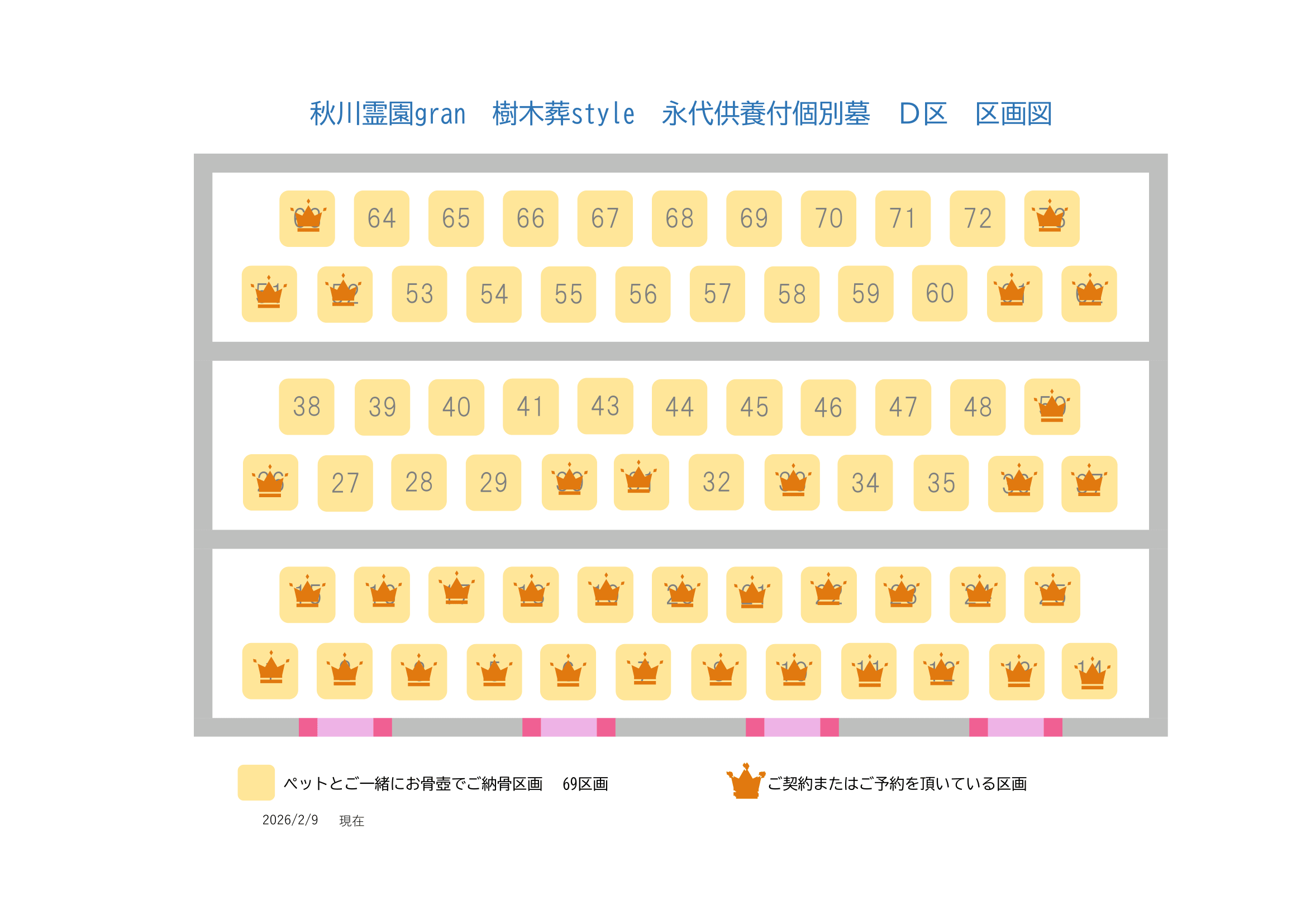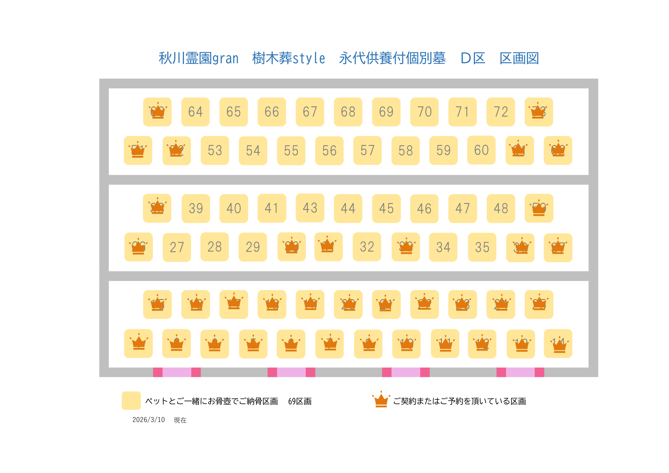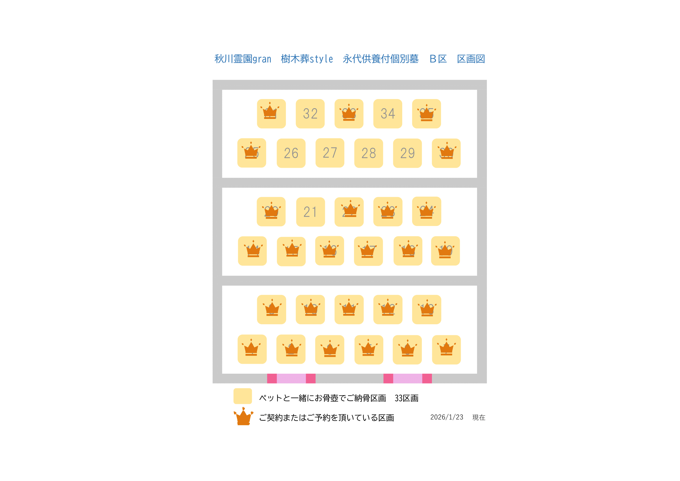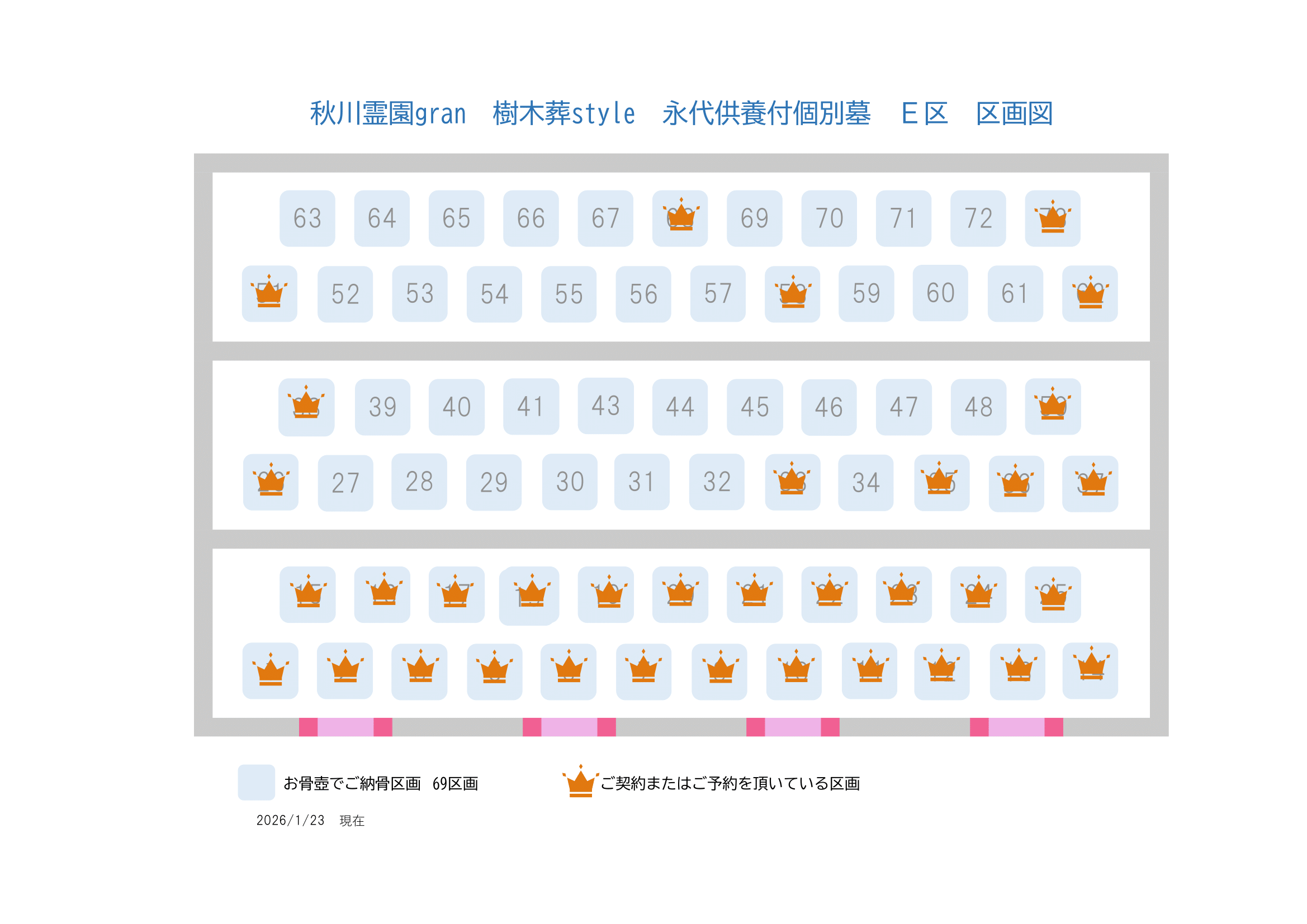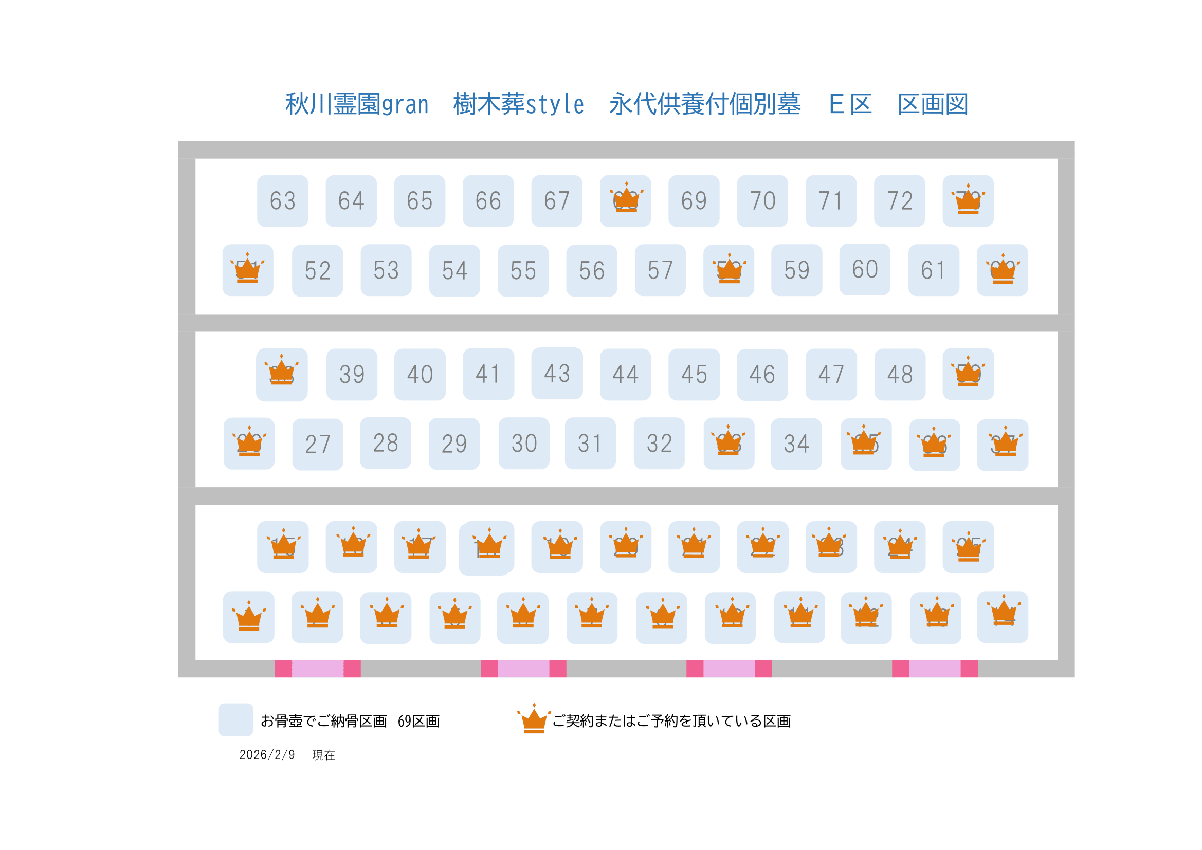 秋川霊園granでは、A~Gの7区画に、2025年9月より新たにH〜Lの新区画が加わった全12区画の樹木葬墓地をご用意いたしております。